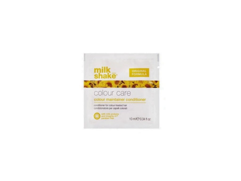 Milk Shake Colour Care je specializovaný kondicionér vytvořený pro každodenní péči o barvené vlasy. Jeho receptura byla obohacena o mléčné bílkoviny, extrakt z bobulí a patentovaný komplex Integrity 41® (přírodní extrakt ze slunečnicových semen), který pomáhá chránit intenzitu barvy a prodlužuje jeho trvanlivost.