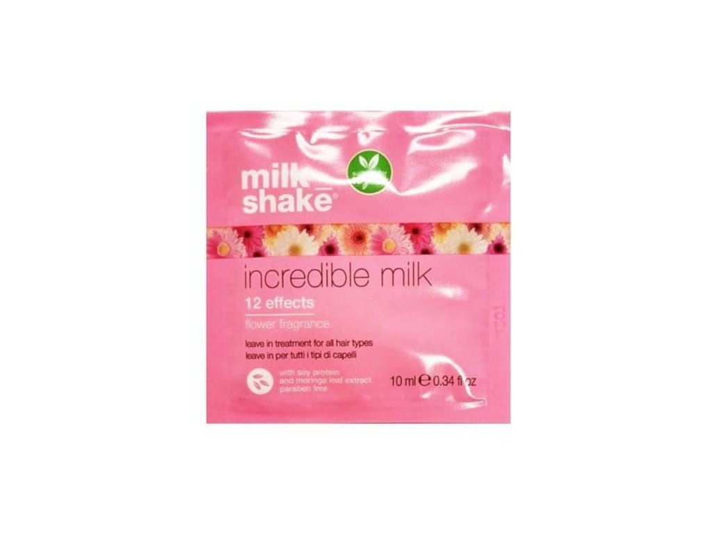 Kondicionérovací mléko Milk_Shake 10 ml je multifunkční produkt, který dokáže posílit vaše vlasy pomocí 12 různých funkcí. Tento produkt má intenzivní regenerační vlastnosti a pomáhá chránit vlasy před lámáním. Mléko dodá vlasům lesk a objem a usnadňuje jejich česání, a po úpravě účesu vydrží déle. Vlasy se přirozeně lesknou a produkt pomáhá kontrolovat neposlušné vlasy, chrání je před tepelnými úpravami a dodává jim přirozený objem.